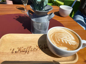 Wij bieden tal van koffies en lekkere latteverleidingen aan met daarnaast ook gebakjes, wafeltjes, pannenkoeken, ijsjes, vers vruchtensap, homemadelimonades... Bij speciale gelegenheden bieden we onze selfiecinno aan, een cappuccino met je eigen foto! Steeds leuk om je vrienden of familie aan de tafel te verrassen.